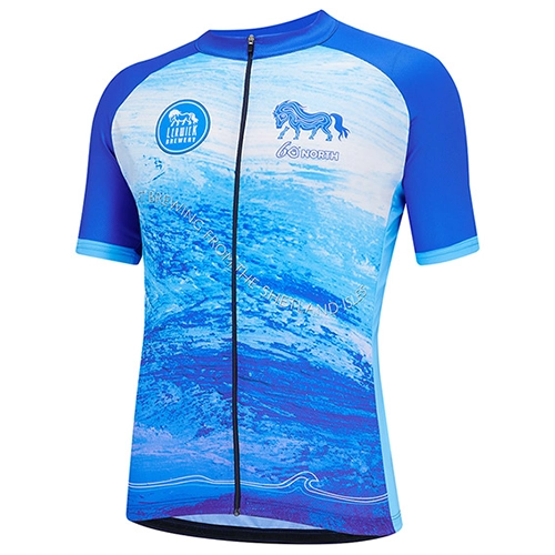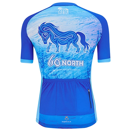 Guaranteed to make you stand out from the crowd this stylish cycling shirt with designer tones of the blue waters of Shetland features the same graphics c as used on the Lerwick Brewery 60 North lager. The design includes a large signature Shetland Pony on the back.