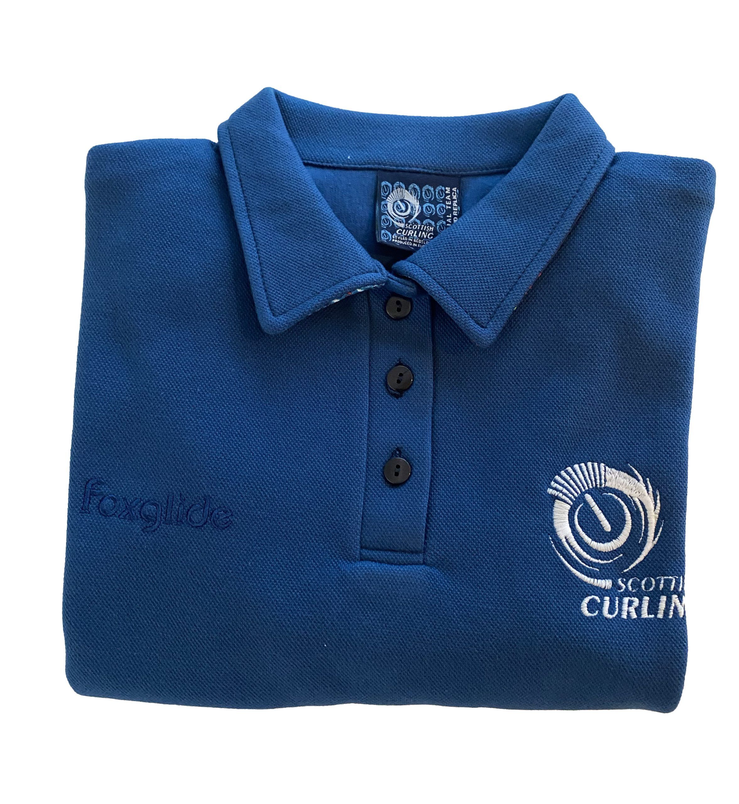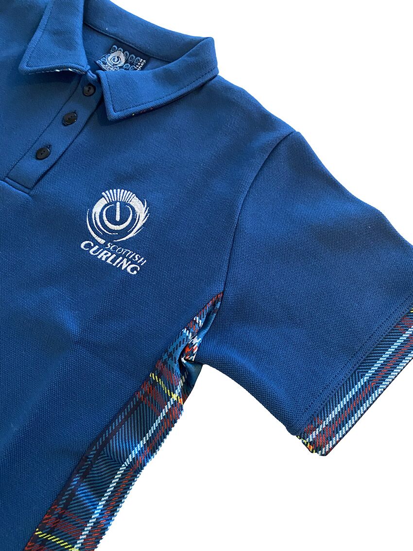 Scottish Curling Mens prototype cotton polo shirt. Scottish Curling branding on front.